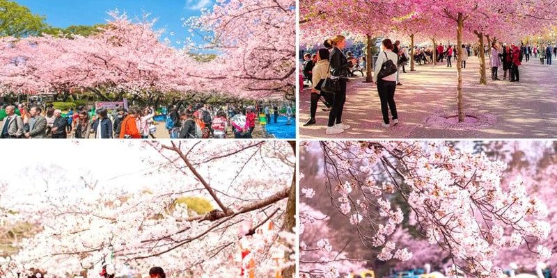 Hoa anh đào tại Nhật thường nở nhất loạt, phủ kín dày đặc hầu hết ở các công viên, lâu đài, ven các bờ sông và khu phố cổ, tạo nên không gian mùa xuân ngập sắc hồng lãng mạn, khiến cả đất nước như được khoác lên mình tấm áo hoa mềm mại và đầy cuốn hút. Bên cạnh việc chiêm ngưỡng cảnh sắc rạng rỡ, du khách còn có dịp trải nghiệm văn hóa Hanami – truyền thống ngắm hoa lâu đời của người Nhật mỗi mùa hoa anh đào về